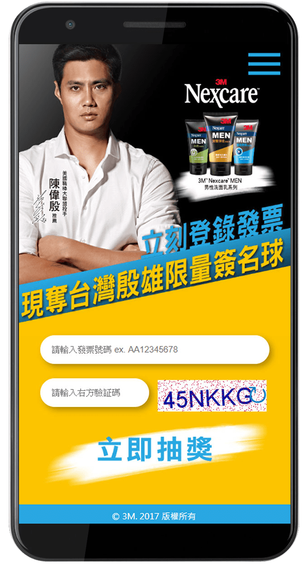 邀請台灣職棒好手「陳偉殷」代言此商品形象代言人並為主要畫面視覺設計人物,而設計的整體色調加上這次的「男性深層淨油洗面乳」瓶身顏色設計,塑造出商品想替男生極速肌淨完封髒污的理念,同時加上限量簽名商品,促進讓男性消費者參與發票登錄活動機制。